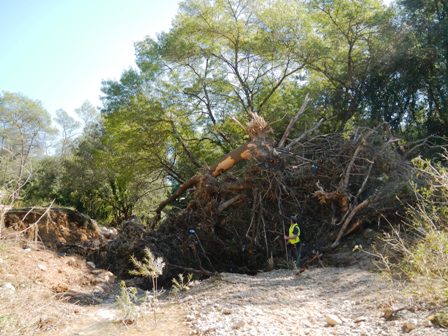 - d’importants embâcles végétaux arrachés aux forêts et accumulés dans les lits mineurs,